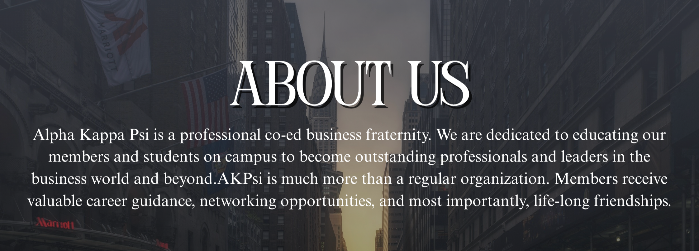 Although we are a business fraternity, we are opened to students of all majors. Our brothers come from a wide range of majors including English, Actuarial Science, Pre-Med, Political Science, and many more.